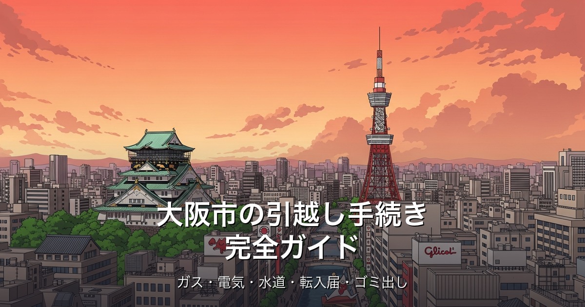 大阪市への引越しでは、ガス・電気・水道のライフライン手続きと区役所での転入届が最優先です。特にガスの開栓は立ち会いが必須なため、早めの予約をおすすめします。